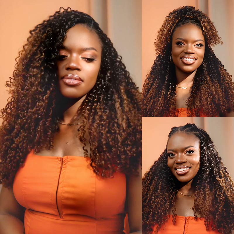 QVR Glueless Ombre Brown Twist Curly Half Wig 250% Density Human Hair Wig #T2/30 Wear Go Flip Over Wig