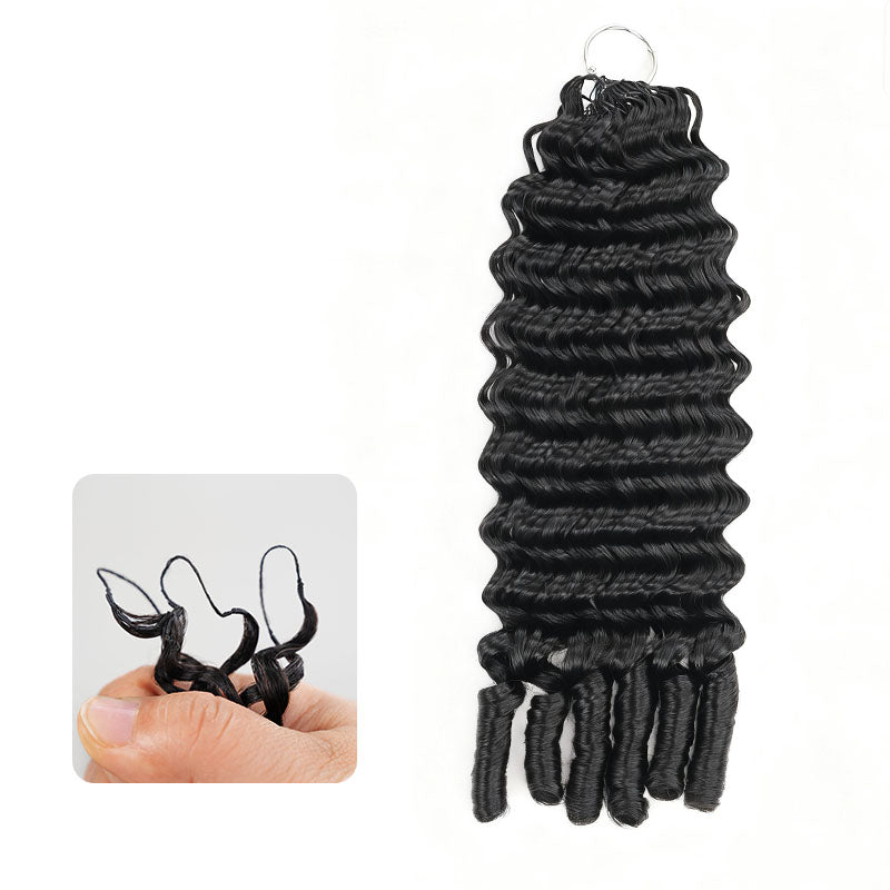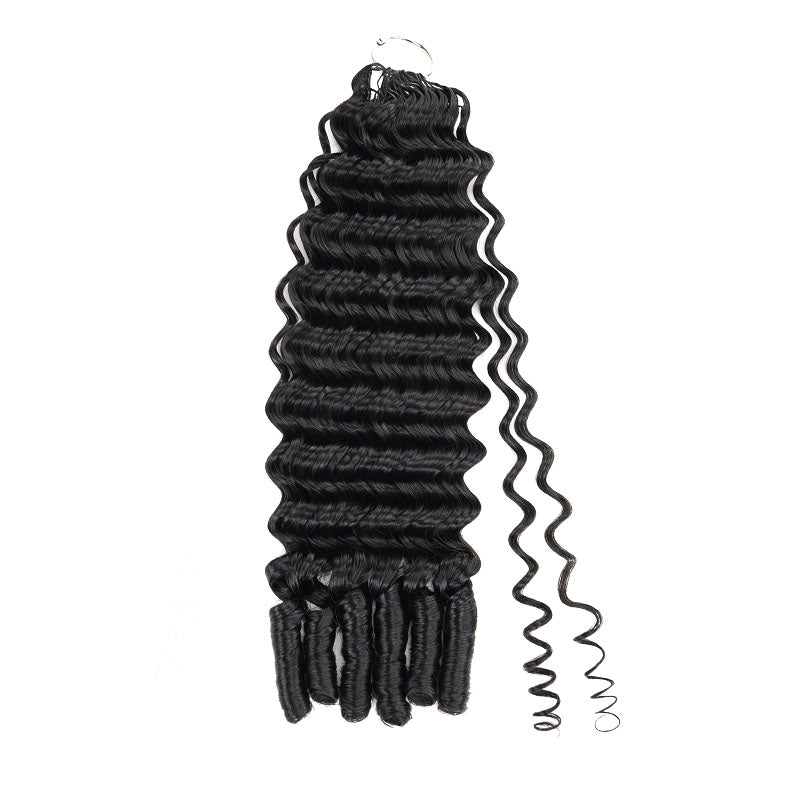 QVR Deep Wave Feather Crochet Human Hair with Sprial Ends Machine Made Crochet Weave Hair Extensions