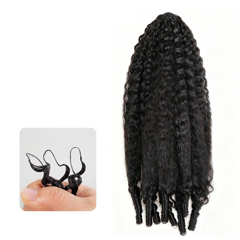 QVR Kinky Straight Feather Crochet Human Hair with Sprial Ends Machine Made Crochet Weave Hair Extensions