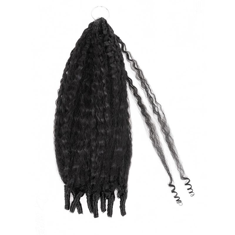 QVR #T1B/30 Crochet Hair Small Kinky Curly Machine Made Feather Human Hair Extension