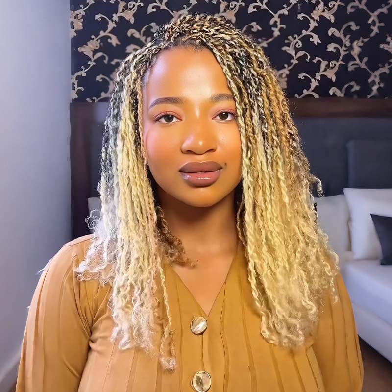 QVR Honey Caramel Mixed Highlights Feather Crochet Human Hair Twist Curly Miracle Knots Crochet Weave Hair Extensions