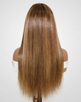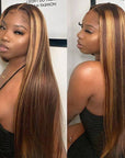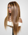 QVR Highlight V Part Wig Piano #4/27 Color Virgin Human Hair Soft Silky Straight Wigs