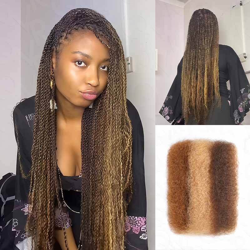 QVR Honey Blonde Color Afro kinky Bulk Hair Extensions For Braiding Dreadlock Human Hair
