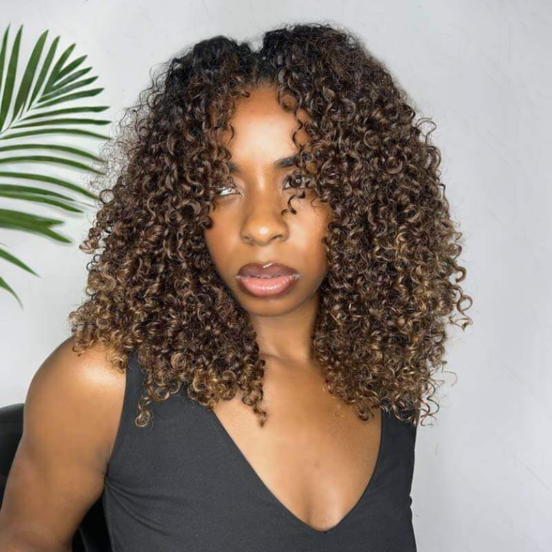 QVR Invisible Lace Edge Kinky Curly V Part Wigs Highlight #1B/30 No Leave Out Human Hair Wig