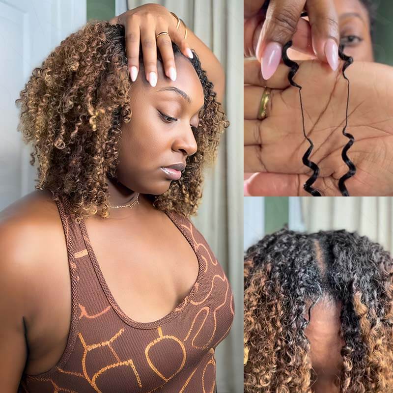 QVR Kinky Curly V Part Wigs Human Hair Beginner Friendly No Leave Out