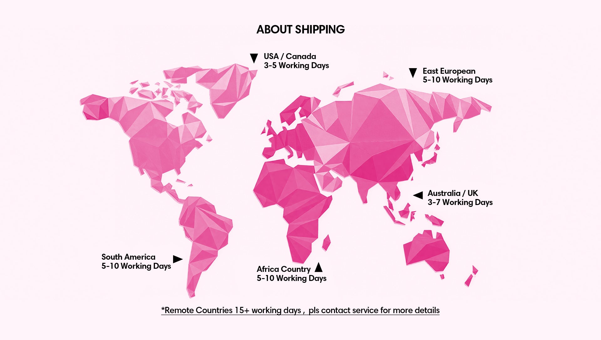 - Remote Countries Shipping: shipping lead times will vary, typically shipping time expected can be 15+ working days. Contact us to know more details. Some special remote areas need to pay corresponding remote fees.