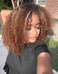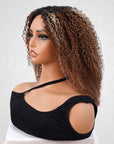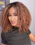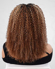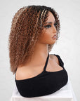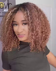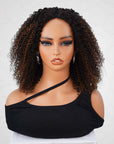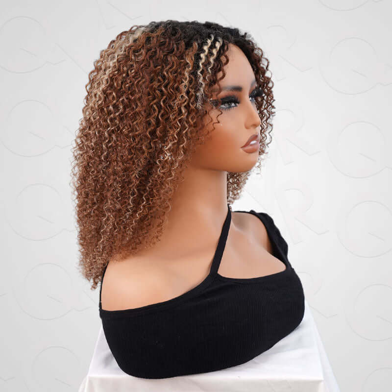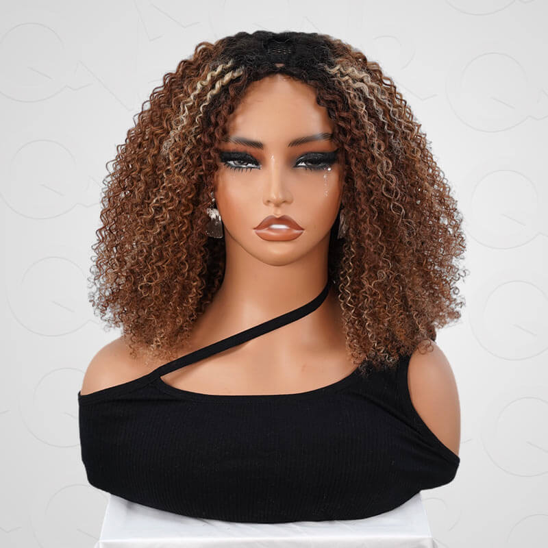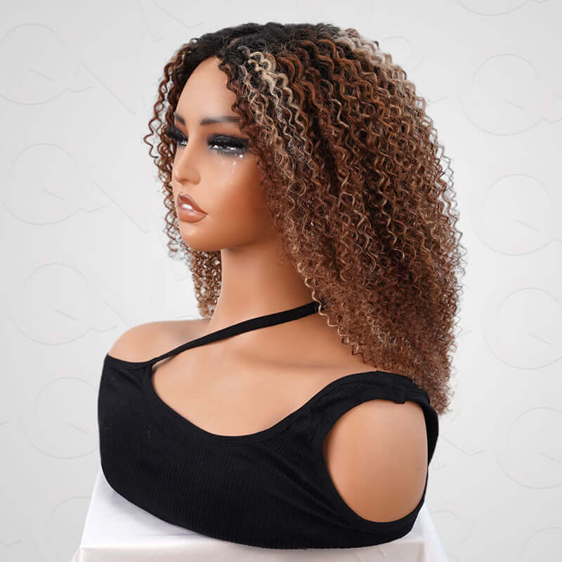 - QVR Invisible Lace Edge Kinky Curly V Part Wigs Highlight #1B/33/30/613 No Leave Out Human Hair Wig