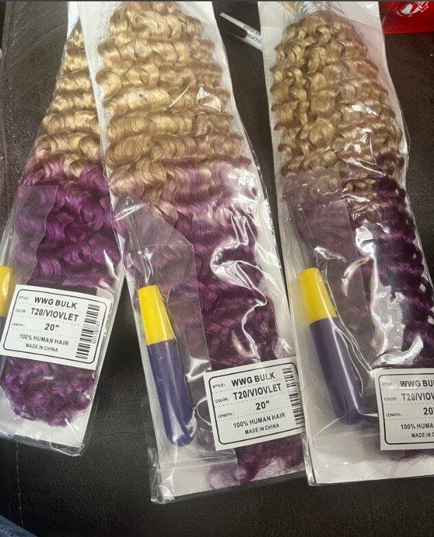 QVR Ombre #T20/VIOVLET Water Wave Bulk Hair Extensions for Boho Knotless Braiding